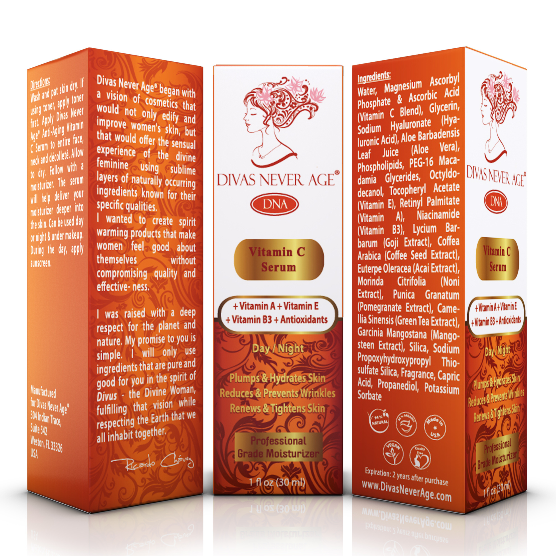 The Divas Never Age® Vitamin C Serum, Hyaluronic Acid Serum, and Eye Serum are carefully designed to honor that story.