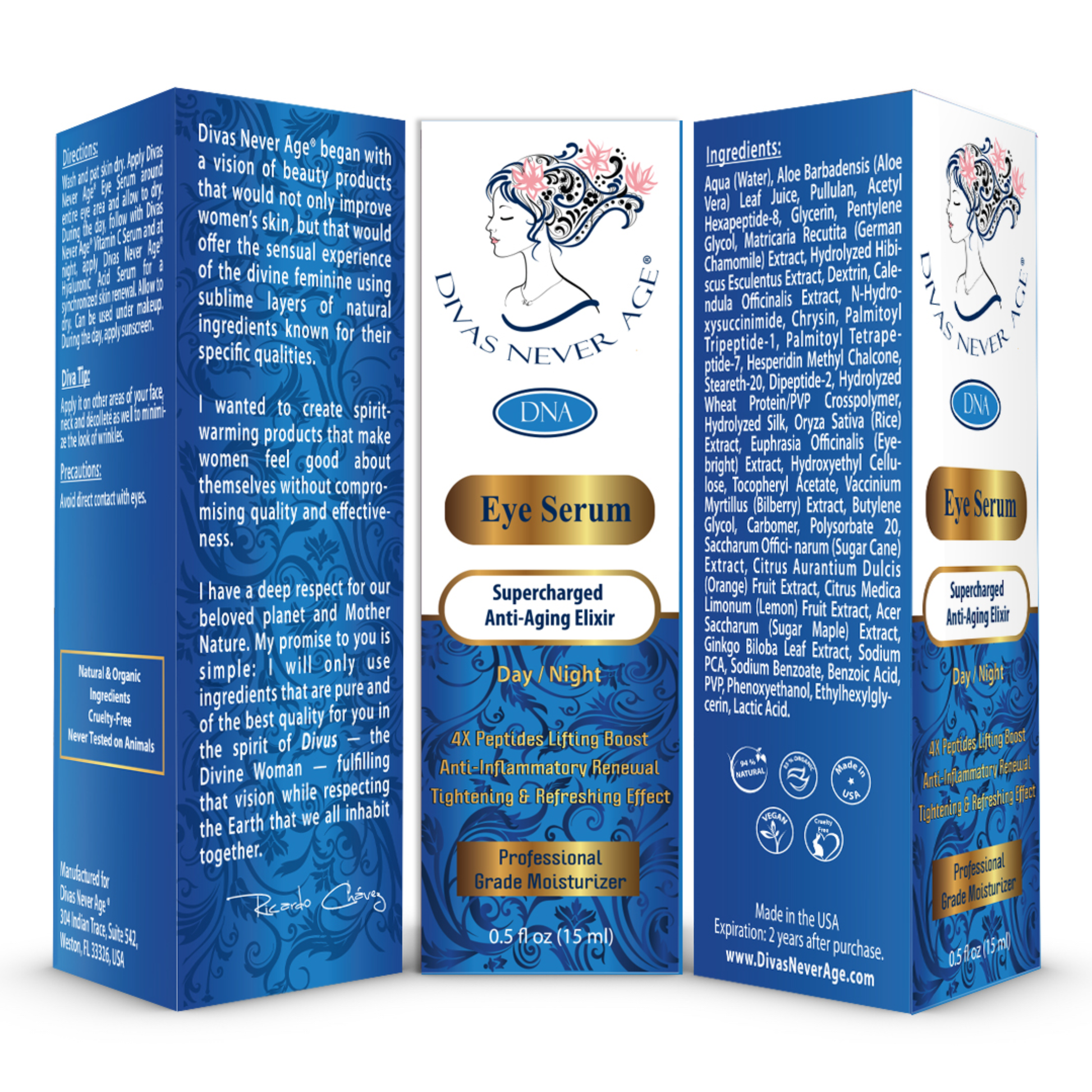 6. Apply the Divas Never Age® Eye Serum around your eyes with your ring finger and let it dry.